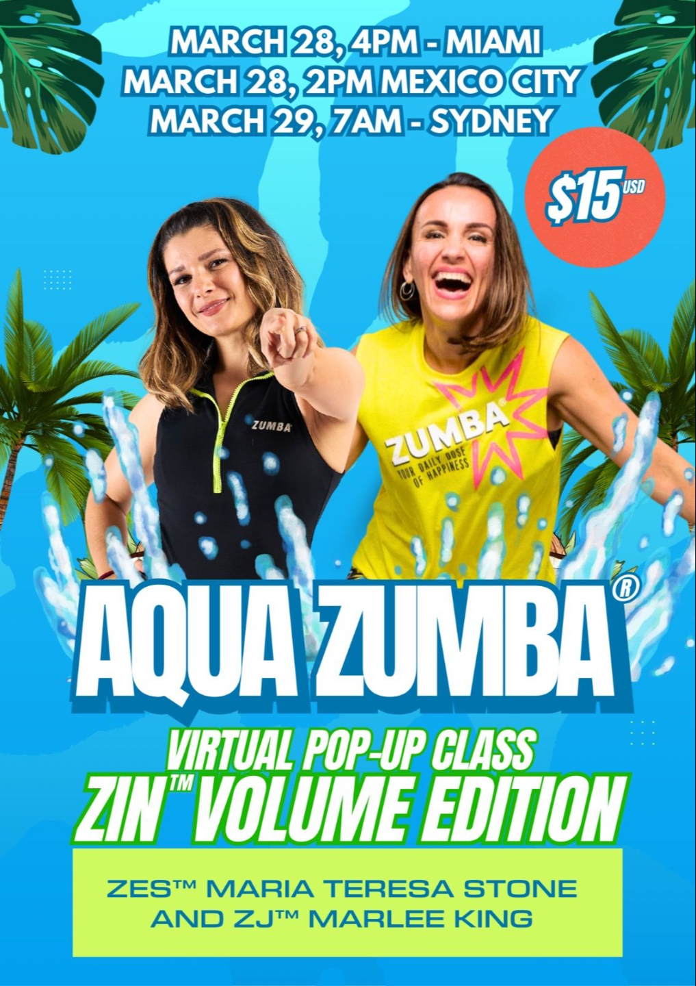 Get ready to make a "splash" from anywhere in the world! 💦💃 Join ZJ Marlee King and ZES Maria Teresa Stone for one high-energy hour of "dry" Aqua Zumba®